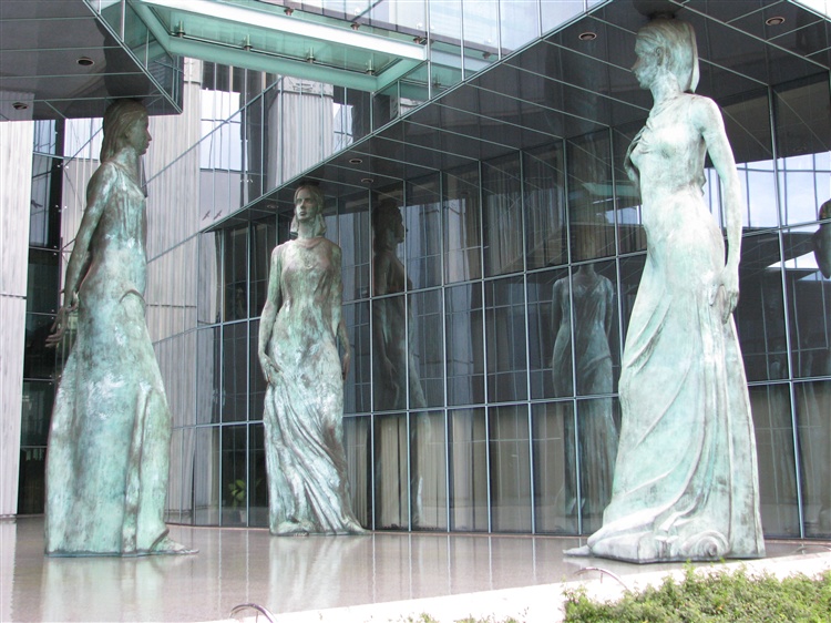 Gmach Sądu Najwyższego, zlokalizowany przy Placu Krasińskich w Warszawie, posiada umieszczone nie od frontu budynku, lecz z drugiej strony gmachu, przy zjeździe do garaży, 3 kariatydy. Są to podpory architektoniczne w formie postaci, najczęściej kobiecej, pełniące funkcję kolumny podtrzymującej gzyms, balkon lub belkowanie. Kariatydy mają twarze żony i dwóch córek Marka Budzyńskiego – architekta. Mają to być personifikacje Wiary, Nadziei i Miłości. Ciekawostką jest fakt, że kariatydy miały znaleźć się pierwotnie, w fazie projektu, od strony Placu Krasińskich, ale były biskup polowy Wojska Polskiego, Sławoj Leszek Głódź, zaprotestował przeciwko nagim kobietom w pobliżu Katedry Polowej Wojska Polskiego.