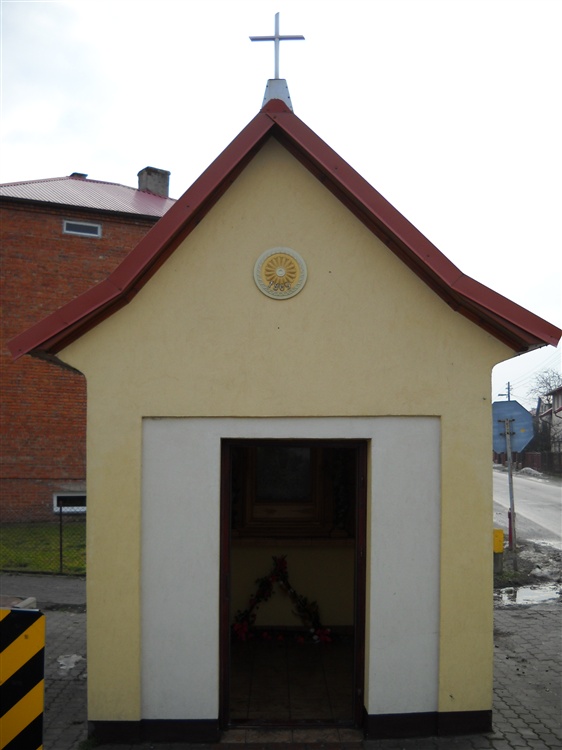 Kapliczka została wybudowana w 1869 roku przez Tomasza Chruściela po śmierci jego małżonki. Znajduje się w centrum Sokolnik, przy rozstaju dwóch dróg. W okresie zaborów przechowywano w niej broń i dokumenty. Po wielkiej powodzi w 2010 roku poddano ją gruntownemu remontowi.