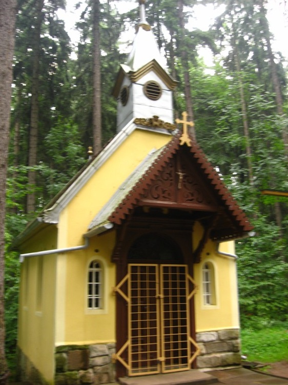Piękna, murowana kapliczka zbudowana w XIX w., u stóp której płynie źródełko uważane przez wiele osób za lecznicze. W 1830 r. leśniczy znalazł obraz Matki Boskiej Bolesnej, modląc się, zauważył że spod jodły płynie źródełko. Podczas epidemii cholery ludzie przychodzili tutaj modlić się, dzięki czemu epidemia ustała. Miejsce to słynęło także z licznych uzdrowień. W podzięce postawiono tutaj drewnianą kapliczkę, która szybko niszczała, wybudowano więc nową, murowaną.