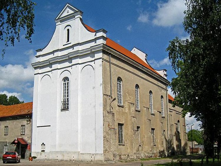 Kościół ma cechy barokowe i jest orientowany. Zespół klasztorny zbudowany został od północnej strony kościoła. Wewnątrz zachował się układ pomieszczeń i wielu sklepień. Pośrodku zabudowań mieści się prostokątny wirydarz. Obok szkoły stoi pomnik Józefa Piłsudskiego, który wrócił na dawne miejsce w 1989 r. Na cokole pomnika znajdują się dwie tablice z nazwiskami żołnierzy 10 pułku poległych w wojnie bolszewickiej 1918-1920 r.