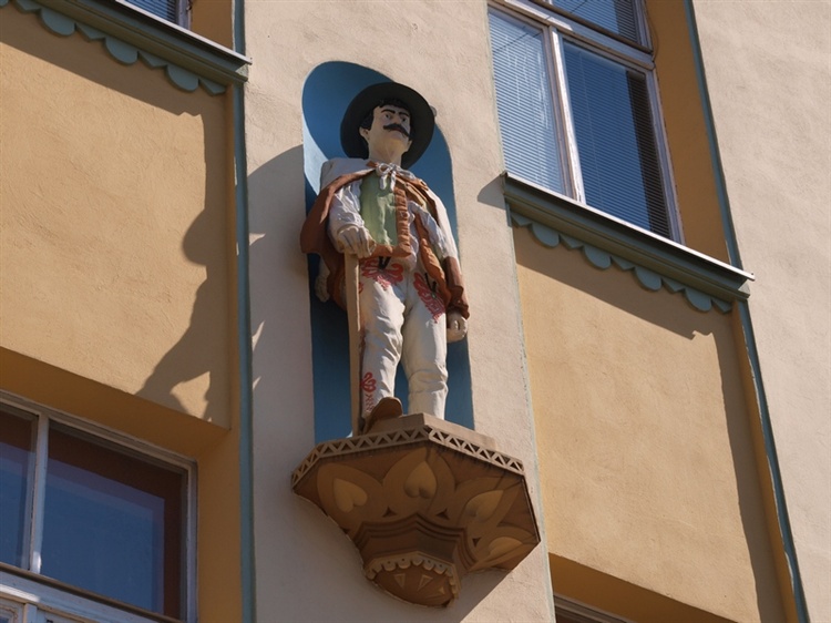 Kamienica została wzniesiona w 1910 roku dla Jana Witolda Starowicza - dyrektora łódzkich zakładów "Leonhardt, Woelker i Girbardt". Projektantem był Leon Lubotynowicz. Starowicz bardzo lubił Zakopane i jego architekturę. Dlatego też na kamienicę przeniesiono wiele elementów zakopiańskich. Do dziś przetrwał jedynie "Góral" zdobiący front kamienicy. Autorem rzeźby był Władysław Czapliński. W tejże kamienicy, w 1914 roku otwarto pierwszy sklep spółdzielczy należący do Stowarzyszenia Spożywców.