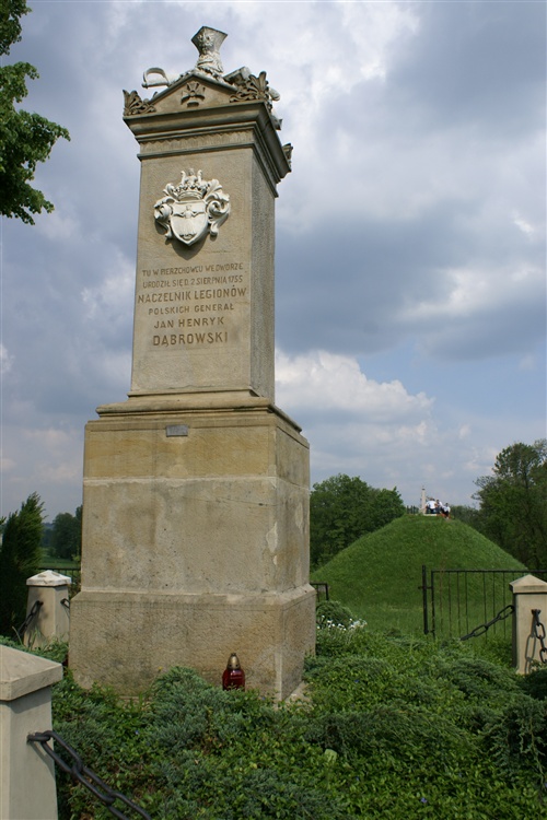 Pamięć o urodzonym w 1755 r w Pierzchowie jest ciągle żywa. Świadectwem tego jest pomnik wykonany z kamienia pińczowskiego, w drugiej połowie XIX w. Na frontowej ścianie umieszczony jest herb Dąbrowskiego - Panna, a poniżej informacja o treści „TU W PIERZCHOWCU WE DWORZE URODZIŁ SIĘ 2 SIERPNIA 1755 ROKU NACZELNIK LEGIONÓW POLSKIECH GENERAŁ JAN HENRYK DĄBROWSKI”.