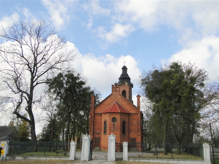 Obok kościoła stoi pomnik Jana Pawła II odsłonięty 13 maja 2005 r.
