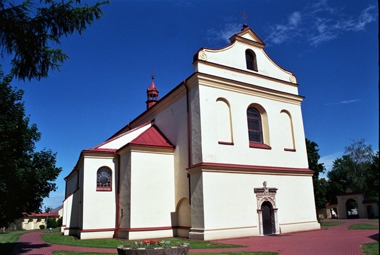 Kościół parafialny pw. Świętej Trójcy i Wszystkich Świętych, wraz z otaczającym go murem ze strzelnicami, które również warto zobaczyć, został wybudowany około 1616 r. z fundacji proboszcza - ks. Feliksa ze Skaryszewa Skaryszewskiego. Konsekracja tej późnorenesansowej świątyni nastąpiła w 1619 r.
