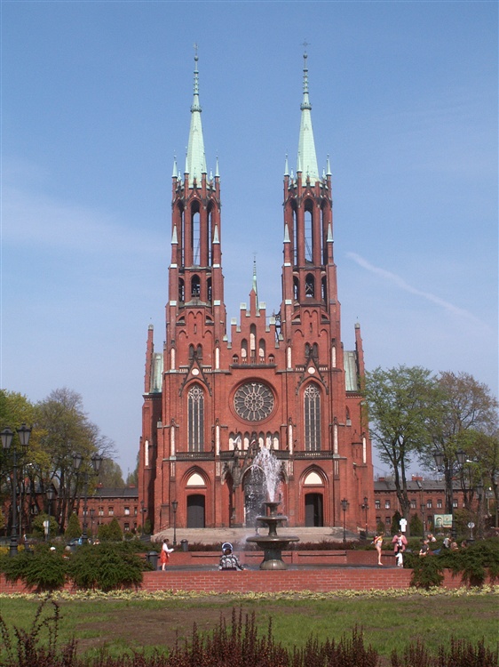 Kościół farny (kościołem farnym nazywa się najstarszy kościół w mieście, lub główny kościół dekanatu), wybudowany w latach 1900-1903 w stylu neogotyckim wg projektu Józefa Piusa Dziekońskiego. Wybudowany m.in. dzięki wsparciu finansowemu, jak również materialnemu, Karola Dittricha. Dittrich ofiarował na budowę ponad 3 mln cegieł z cegielni w Radziejowicach będącej jego własnością. Kościół wzorowany na katedrze w Kolonii.