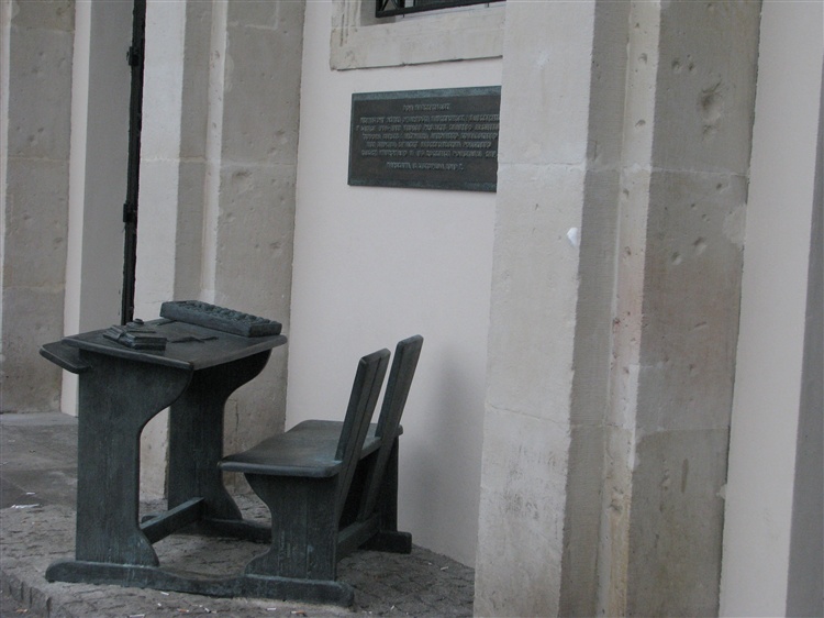 Pomnik stoi przed gmachem ZNP na Powiślu przy ul. Wybrzeże Kościuszkowskie 35. Jest repliką ławki szkolnej z 1905 roku. Jej pierwowzór można zobaczyć w zbiorach Muzeum ZNP w Pilaszkowie. Takiej ławki nie znają dzisiejsi uczniowie - to siedzisko z pulpitem, w którym znajduje się otwór na kałamarz. Na pulpicie są liczydło z brązu i książki przewiązane tasiemką.