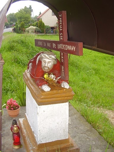 Na zboczu wzniesienia zwanego Komanią Górą, przez które w odległych czasach wiódł najkrótszy szlak z Gilowic przez Rychwałd do Żywca, znajduje się figura Chrystusa Upadającego pod krzyżem, uznawana przez historyków sztuki za najstarszą tego typu w Polsce.