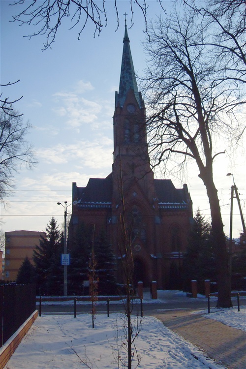 Kościół zbudowany został w stylu neogotyckim w latach 1896-1906, według projektu nieznanego architekta. Do połowy XX w. funkcjonował jako kościół ewangelicki. W 1976 r. kościół konsekrowano, a w rok później powołano parafię Wniebowstąpienia Pańskiego.