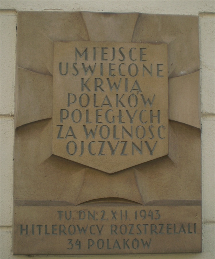Warszawa jest miastem, w którym w wielu miejscach znajdują się tablice upamiętniające "Miejsca Uświęcone Krwią Polaków". W latach 50-tych tablice z piaskowca umieszczono w miejscach kaźni hitlerowskich na Warszawiakach. Jedno z tych miejsc znajduje się przy ulicy Nowy Świat 64, gdzie pod ścianą kamienicy 2 grudnia 1943 r. Niemcy rozstrzelali 34 mieszkańców. W miejscach tych, mających przypominać historię, w każdą rocznicę zapalają się symboliczne znicze i składane są kwiaty.