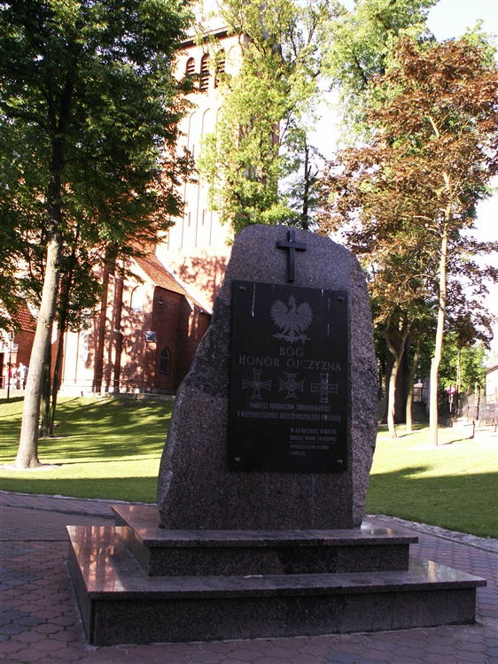 "Bóg Honor Ojczyzna" to pierwsze słowa wyryte na pomniku, który został poświęcony obrońcom Rzeczypospolitej Polskiej. Pomnik-głaz narzutowy wraz z tablicą pamiątkową odsłonięto w 60. rocznicę wybuchu II wojny światowej. Ufundowały go społeczności Ostródy i powiatu ostródzkiego.