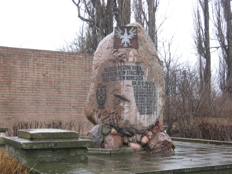 Nieopodal dworca kolejowego stoi pomnik z 1960 roku, upamiętniający miejsce rozstrzelania dziesięciu Polaków podczas zbiorowej egzekucji przeprowadzonej 31 października 1943 roku. Napis na pomniku głosi "Miejsce uświęcone krwią męczeńską Polaków straconych przez faszystów niemieckich. Cześć ich pamięci". Poniżej zamieszczono listę straconych.