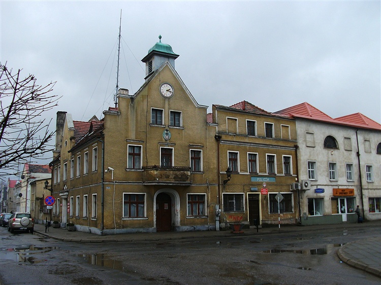 Klasycystyczny budynek posiada charakterystyczną wieżyczkę oraz zegar w elewacji frontowej. Powyżej balkonu, nad głównym wejściem znajduje się kartusz z herbem Schlichtyngów, będącym również herbem miasta. Obecnie w ratuszu mieszczą się Urząd Miasta i Gminy oraz Komisariat Policji.