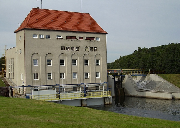 Elektrownia wodna na Gwdzie o mocy 2 MW. Na jej terenie warto zobaczyć działające do dziś trzy hydrozespoły z turbinami Francisa.