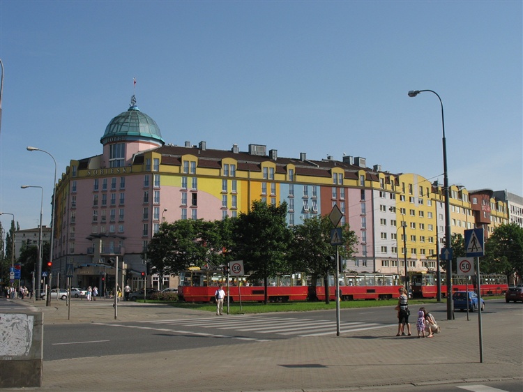 Charakterystyczna, kolorowa elewacja budynku (twórcą jest malarz Hans Piccottini) powoduje, że hotel wyróżnia się spośród innych obiektów znajdujących się w dzielnicy Warszawa Ochota. Hotel został zaprojektowany i wykonany przez zespół polsko-austriacki. Otwarcie nastąpiło w 1992 r.