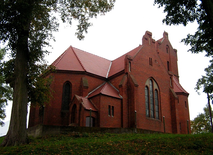 Późnoromański kościół kamienno-ceglany (poł. XIII w., przebudowany).