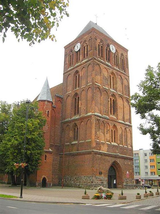 Gotycki kościół Narodzenia NMP (1 poł. XIV w., przebudowywany XVIII i XIX w., wieża ok. 1400).