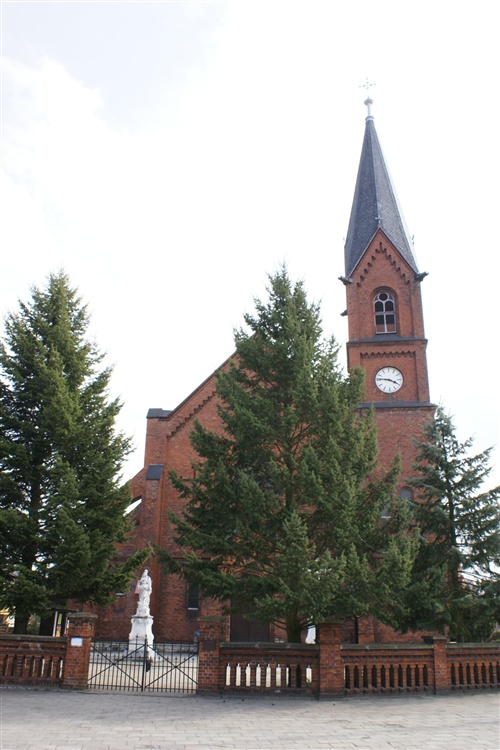 Obecny kościół wzniesiony został w latach 1880-83 na miejscu poprzedniej świątyni. Kościół jest murowany, utrzymany w stylu neogotyckim. Poświęcony został zaraz po ukończeniu budowy - w październiku 1883 roku.