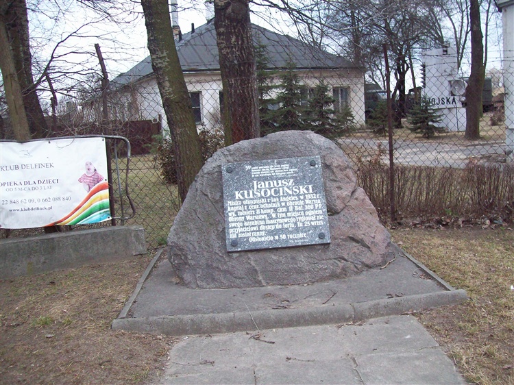 Głaz pamięci poświęcony jest Januszowi Kusocińskiemu, mistrzowi olimpijskiemu z Los Angeles z 1932 roku. Znajduje się przy ulicy Powsińskiej, tuż przy Forcie Czerniakowskim, niedaleko Muzeum Polskiej Techniki Wojskowej. Na kamieniu umieszczona jest tablica, na której wyryty jest napis: „JANUSZ KUSOCIŃSKI, mistrz olimpijski z Los Angeles z 1932 r., kapral z cenz. ochotnik w obronie Warszawy, żołnierz II komp. ckm II Bat. 360 PP obrony Warszawy. Tutaj, w tym miejscu ogniem swego karabinu maszynowego ryglował nieprzyjacielowi dostęp do fortu. Tu 25 września został ranny. Odsłonięto w 50. rocznicę”, a także słowa wiersza Kornela Ujejskiego Maraton: „W nagłej potrzebie dla kraju posługi rzucano skarby, warsztaty i pługi. I każdy ziszczał, nie słowem, lecz czynem, że niewyrodnym był ojczyzny synem”.