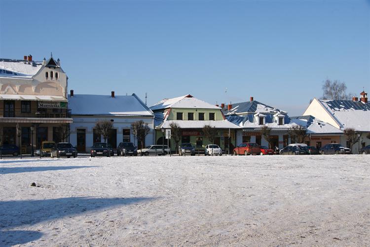 Stojąc na zabytkowym starosądeckim rynku, możemy podziwiać piękno jego dziewiętnastowiecznej zabudowy. Patrząc w prawo od apteki (wyjazd na Nowy Sącz) można z łatwością odróżnić zabytkowe budowle wzniesione po pożarze w 1795 r. Należą do nich m.in. budynki nr 2, 3 i 4 we wschodniej pierzei rynku. W budynku nr 5 działa mała "Galeria". Można tu nabyć drobne pamiątki, uzyskać informację turystyczną i obejrzeć ciekawe, czasowe wystawy plastyczne. Budynek nr 6 to tzw. "Dom na Dołkach". W południowej pierzei warto zwrócić uwagę na budynek nr 8, wyróżniony tablicą jako dom rodzinny ks. Leopolda Kmietowicza - uczestnika powstania chochołowskiego w 1846 r., a także na domy nr 9 i nr 10. Po zachodniej stronie rynku budynek narożny nr 11 to najlepiej zachowany dom z podcieniami, zmodernizowany na potrzeby handlowe. Tutaj urodził się malarz Jan Nepomucen Danielski (1783-1844). Dom nr 14 ma charakterystyczną bramę wjazdową, a nr 16 - piwnicę wyciętą ku rynkowi, dziś zamienioną na bar "Pod Dzwonkiem". Nazwa ta odnosi się do sąsiedniego budynku nr 17, z widoczną na dachu wieżyczką z datą 1895 r. Dom nr 17 był wielokrotnie przebudowywany. Do roku 1920 mieściła się tu strażnica policji miejskiej zwana z niemieckiego "wachcymbra". Budynek uważany jest za najbardziej charakterystyczny dom przyrynkowy. W narożnym przejściu dla pieszych znajduje się pamiątkowa tablica poświęcona ludziom, których w czasie II wojny światowej wywożono stąd do obozów śmierci. W północnej pierzei wyróżniają się wzniesione po wzmiankowanym pożarze z 1795 r. domy nr 19 oraz nr 22. Pozostałe, niewymienione tu zabytki, stanowią rezultat licznych przebudów prowadzonych na przestrzeni lat lub też zostały wybudowane w początkach XX w., jak dom nr 12 z 1906 r. wzniesiony wg projektu inż. Zenona Remiego, mieszczący dziś restaurację i kawiarnię "Marysieńka". We wszystkich domach bez wyjątku zachowały się stare, sklepione kamieniem piwnice, które jednak nie są dostępne do zwiedzania.