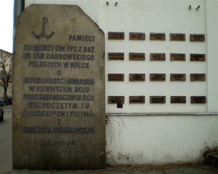 Tablica ta umieszczona jest na budynku kotłowni, ok. 50 metrów od ulicy Krasińskiego. Upamiętnia rozpoczęcie Powstania Warszawskiego w dniu 1 sierpnia 1944 roku na Żoliborzu. Po prawej stronie na ścianie znajdują się tabliczki, na których podane są imiona i nazwiska poległych w tym dniu 20 żołnierzy Armii Krajowej.