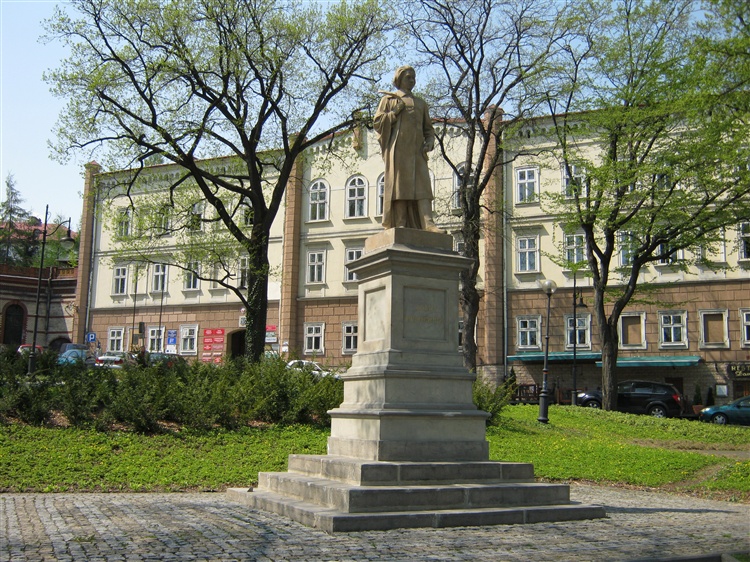 Pomnik Adama Mickiewicza znajduje się na Placu Dominikańskim. Został ufundowany przez mieszkańców miasta, którzy w ten sposób uczcili sprowadzenie ciała Adama Mickiewicza w 1890 roku na Wawel do Krakowa. Jego autorem jest rzeźbiarz Tomasz Dykas. Został odsłonięty w 1898 roku.