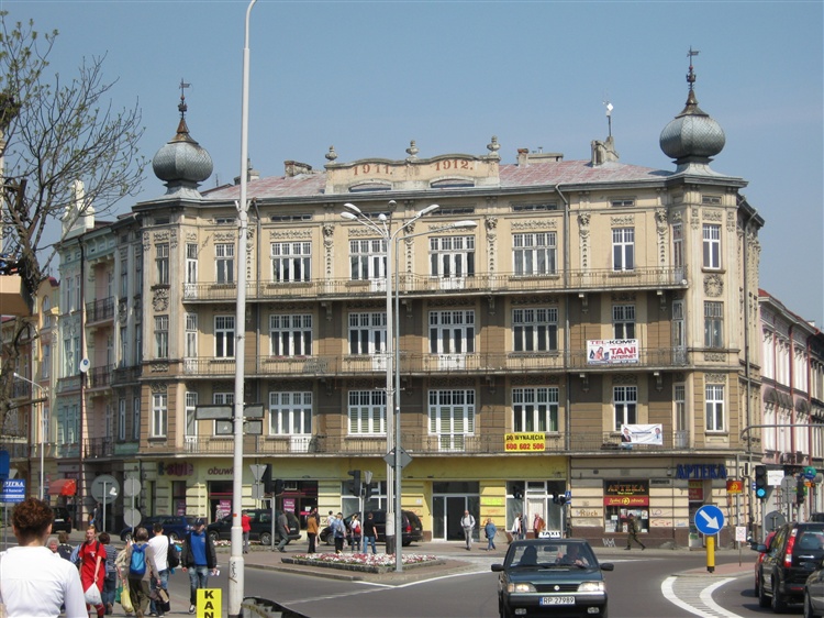 Kamienica przy pl. Konstytucji 7 została wybudowana w latach 1911-12 według projektu Jana Pawlisza i Marcelego Pileckiego. Cechą charakterystyczną budynku jest symetryczna fasada. Posiada ciekawą dekorację secesyjną, na którą składają się liście, owoce kasztanowca oraz maski kobiece. W kamienicy mieściła się szkoła żeńska im. Hoffmanowej.