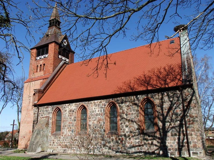 Kościół parafialny pw. MB Szkaplerznej został wzniesiony w XIII w. w stylu romańskim, do budowy użyto kwadr granitowych. Jest to świątynia orientowana, salowa, na planie prostokąta, pierwotnie bez wieży. Kościół był wielokrotnie przebudowywany, obecny wygląd zawdzięcza ostatniej przebudowie z 1866 r., natomiast wieża została wzniesiona w 1900 r. Wyposażenie kościoła reprezentuje różne style, znajduje się tam manierystyczna chrzcielnica z XVII w., rzeźba anioła chrzcielnego z XVIII w., ambona z XIX w., dwa dzwony z XVII w. oraz ołtarz z XVII w. Na placu przykościelnym mieści się cmentarz, czynny jeszcze kilka lat po wojnie. Poświęcenie kościoła po II wojnie światowej nastąpiło 16 lipca 1946 r.
