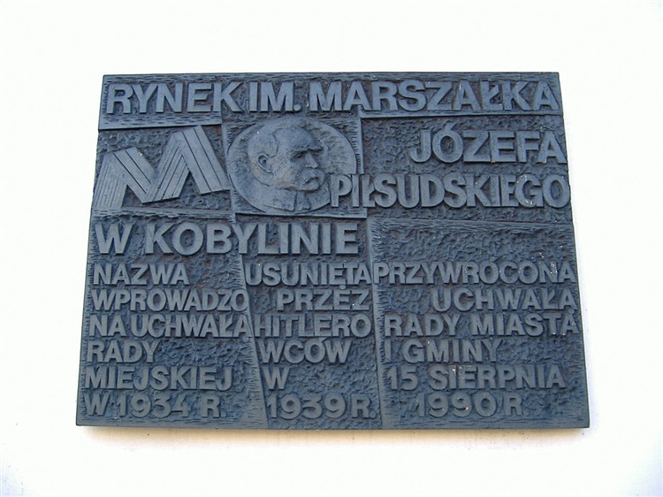 Józef Piłsudski był najważniejszą postacią Polski okresu międzywojennego. Jego postać otaczał prawdziwy kult. Uległa mu również Rada Miejska Kobylina, która w 1934 r. nadała imię marszałka miejskiemu rynkowi. Nazwę usunęli hitlerowcy w 1939 r. Nie powróciła ona również w czasach komunistycznych. Dopiero 15 sierpnia 1990 r. przywrócono nazwę Rynek im. Marszałka Józefa Piłsudskiego. Historię tej nazwy upamiętnia tablica wmurowana w ścianę ratusza.