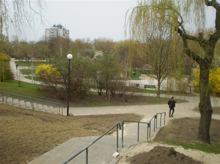 Plac ten usytuowany jest na Żoliborzu, w środku trójkąta ulic: Mickiewicza, Słowackiego i Potockiej, między stacjami metra Plac Wilsona i Marymont, po prawej stronie. Powstał w latach 20-tych ubiegłego stulecia. Znajdują się na nim: alejki spacerowe, ławeczki, plac zabaw dla dzieci oraz boiska sportowe.