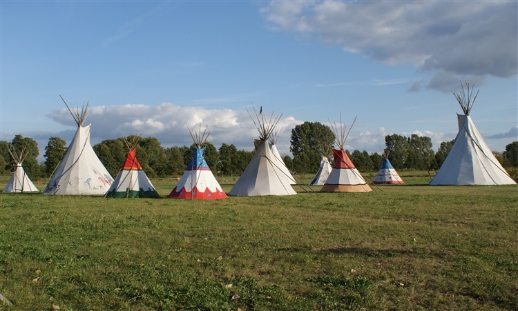 Eksponaty znajdujące się w wiosce jej właściciel należący do Polskiego Ruchu Przyjaciół Indian gromadził przez szestnaście lat. Zwiedzających do świata Indian wprowadza przewodnik, przybliżający kulturę rdzennych mieszkańców Ameryki Północnej. W wiosce indiańskiej do dyspozycji zwiedzających jest jedyna w Polsce indiańska ziemianka (ponad 100m2), w której urządzono muzeum. Obok kilkunastu tipi znaleźć można też saunę indiańską, cmentarzyk i travois (indiański środek transportu). Po zakończonym zwiedzaniu właściciele zachęcają do pozostania na terenie i skorzystania z innych atrakcji jak: strzelanie z łuku, rzut włócznią, rzutkami do celu, rzut na bizonie rogi, walki na równoważni czejeńskiej czy malowanie twarzy. Na terenie wioski znajduje się też plac zabaw, mini zoo, a po zabawie można rozpalić ognisko i upiec kiełbaski. W okresie od lipca do listopada czynny jest labirynt w kukurydzy.