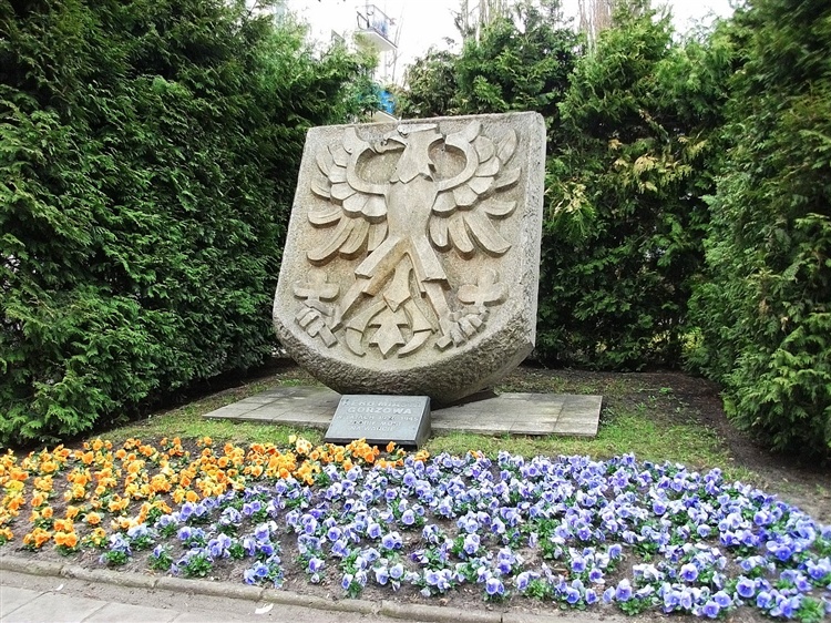 Do 30 stycznia 1945 r. most na Warcie zdobiły dwa betonowe herby Landsberga. Zatonęły wówczas w wodach rzeki po wysadzeniu mostu przez wycofujące się oddziały niemieckie. Po wojnie jeden z nich wyłowiono i ustawiono na niewielkim skwerze naprzeciwko Urzędu Miejskiego przy ulicy Sikorskiego, gdzie stoi do dziś.