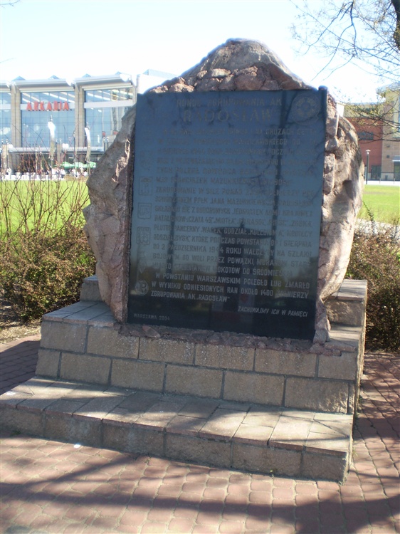 Głaz ten znajduje się na rondzie Zgrupowania AK "Radosław", po prawej stronie alejki prowadzącej do głównego wejścia CH Arkadia. Tablica pamiątkowa na głazie ustawionym tu w 2004 r. w krótkim zarysie przedstawia dzieje zgrupowania. Obecna nazwa zastąpiła poprzednie miano, czyli "rondo Babka".