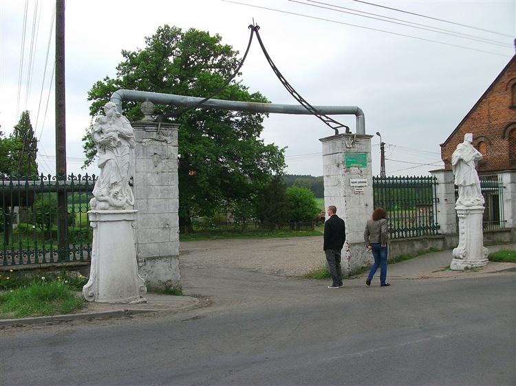 Wjazd na teren majątku Zalesie (Salisch) w XVIII wieku ozdobiły dwie barokowe figury. Z jednej strony bramy stanęła na cokole kamienna postać Matki Boskiej, a z drugiej św. Jana Nepomucena. Białe figury przetrwały szczęśliwie do dzisiaj i są jedną z atrakcji miejscowości.