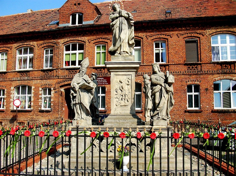 Jednym z najcenniejszych żagańskich zabytków jest barokowy pomnik wotywny stojący na Placu Klasztornym. Ufundowany został przez augustiańskich opatów w 1709 r., aby chronić miasto przed plagami zarazy, pożarów, głodu i wojny. Na pomnik składa się ustawiona centralnie figura Matki Boskiej, którą otaczają ustawione w narożnikach balustrady rzeźby świętych Augustyna, Jadwigi, Floriana i Rocha.