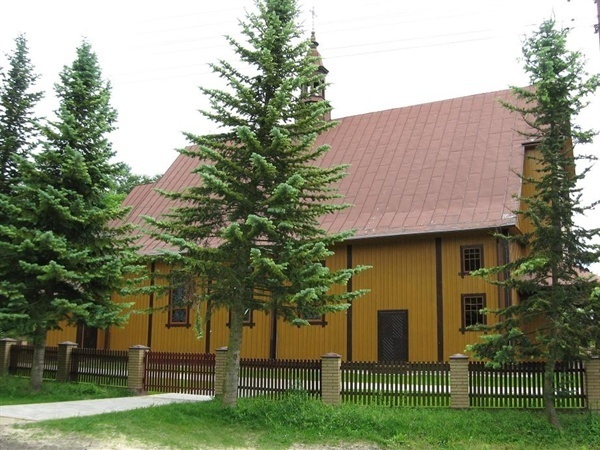 Kościół w Olbięcinie jest drewnianą, trzynawową świątynią wybudowaną w latach 1935-1937 wg projektu arch. Bohdana Kelles-Krausego. Na uwagę zasługuje zabytkowy, czarny ołtarz z rzeźbą przedstawiającą Trójcę Przenajświętszą.W kościele wykorzystano elementy wyposażenia z nieistniejącej kaplicy dworskiej. Obok znajduje się plebania drewniana z 1931 r. We wsi wybijają ze skał wapiennych silne źródła dające początek rzece Tuczyn - dopływowi Sanny.