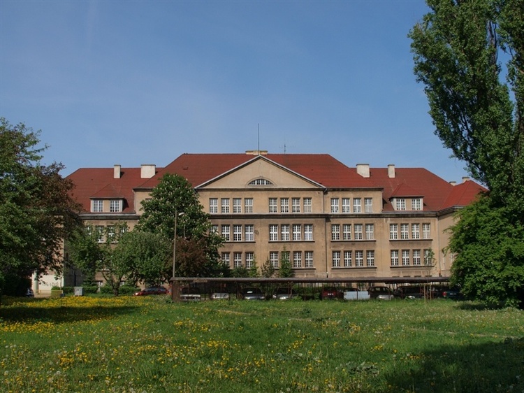 Szkoła została wzniesiona w roku 1925 według projektu Wacława Kowalewskiego. Na ówczesne lata był to budynek bardzo duży i funkcjonalny. Znajdowała się w nim szkoła męska i żeńska. Do dziś niezmiennie patronem szkoły jest Stanisław Staszic. Obok szkoły znajdują się budynki, które kiedyś pełniły funkcję mieszkań dla nauczycieli. Szkoła znajduje się w Łodzi przy ulicy Przyszkole 42.