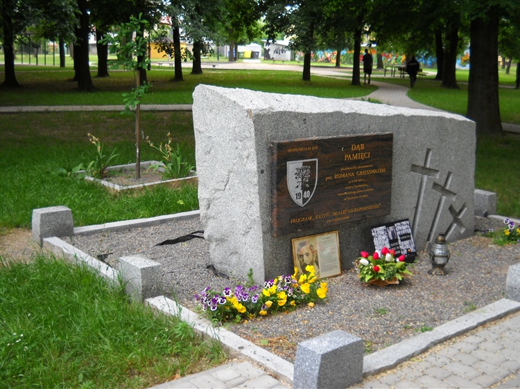 Roman Griesswald urodził się w lipcu 1883 roku w Chmielowie. W trakcie swej edukacji ukończył naukę w gimnazjum w Krakowie i zdobył dyplom inż. rolnika w Wiedniu. W armii austriackiej dosłużył się stopnia podporucznika. W czasie I wojny światowej walczył w obronie twierdzy Przemyśl i po jej kapitulacji znalazł się w obozie jenieckim w Taszkiencie. Po powrocie z niewoli, w 1922 roku, wybudował w Józefowie nowy dwór i zajął się prowadzeniem majątku. Dał się poznać jako dobry gospodarz i społecznik. Po rozpoczęciu II wojny światowej, zmobilizowany do dywizjonu taborów, znalazł się koło Lwowa, gdzie został aresztowany przez Rosjan i osadzony w Starobielsku. W kwietniu 1940 roku został zamordowany przez NKWD w Charkowie. Na skwerze w Skopaniu znajduje się obelisk i dąb upamiętniający Romana Griesswalda.