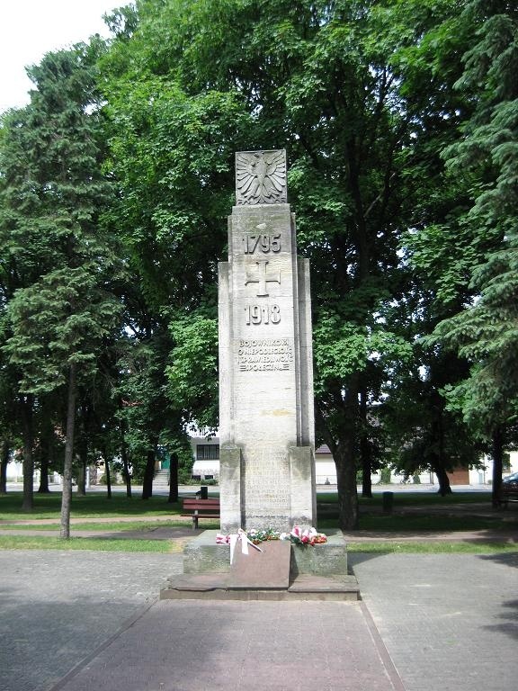 W Ćmielowie na rynku stoi okazałych rozmiarów pomnik w kształcie kolumny z kamiennych bloków, zwieńczony orłem. Pomnik został odsłonięty 11 listopada 1938 roku w 20. rocznicę odzyskania przez Polskę niepodległości. Na pomniku z jednej strony widnieją dwie daty: 1795 + 1918 - bojownikom o niepodległość i sprawiedliwość społeczną, natomiast niżej stosowna treść. Z drugiej zaś strony cokołu wyryte są dwie inne daty: 1863 + 1905, poniżej zaś nazwiska poległych w walce z caratem i uczestników Powstania Styczniowego.