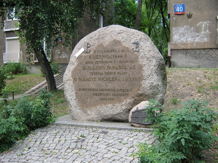 W warszawskiej dzielnicy Wola, przy ulicy Wolskiej, obok budynku mieszkalnego nr 40, znajduje się głaz poświęcony bohaterskiej walce o Pałacyk Michla i Młyny. Na głazie jest umieszczony jest napis: „W tym miejscu w dniu 5 sierpnia 1944 r. Grupa Szturmowa z I kompanii >>Batalionu Parasol<< AK toczyła ciężkie walki o pałacyk Michlera i Młyny”. Pomnik został odsłonięty został w 2006 roku.
