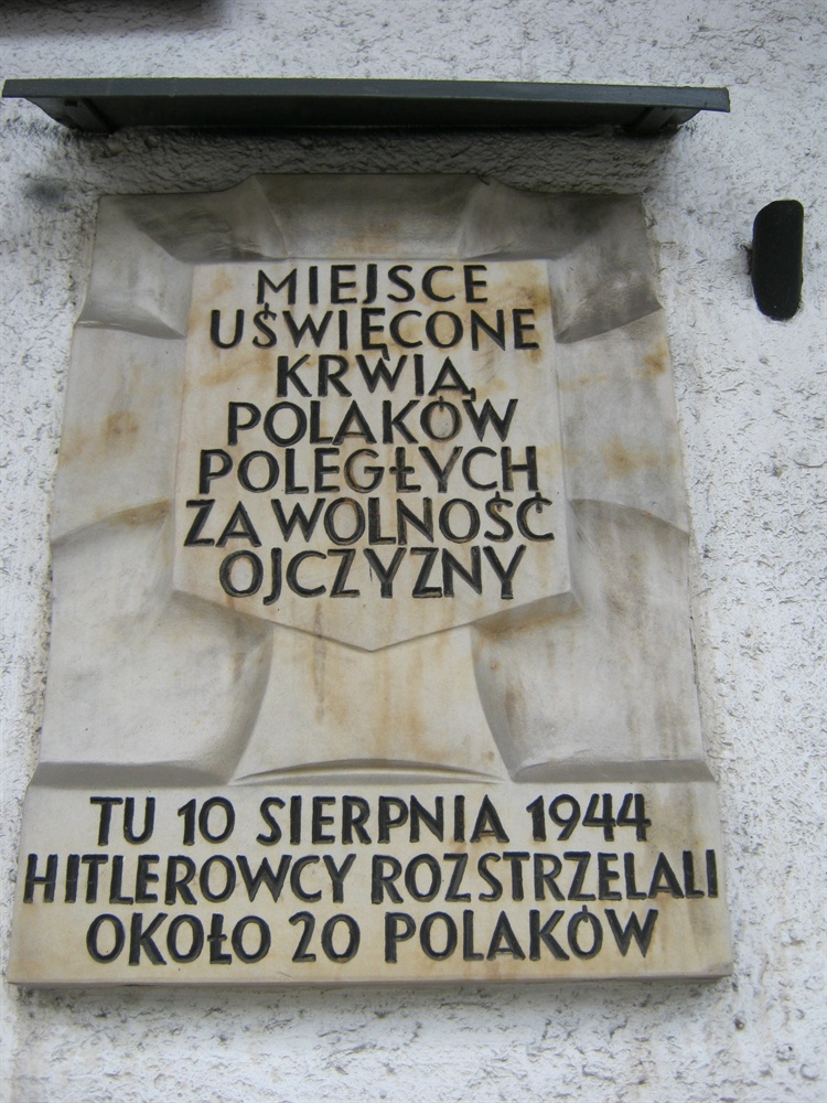 Przy ulicy Wolskiej 58 w warszawskiej dzielnicy Wola znajduje się miejsce pamięci śmierci 20 Polaków, którzy zostali rozstrzelani przez okupanta niemieckiego. Fakt ten upamiętnia tablica, na której widnieje napis: „Tu 10 sierpnia 1944 hitlerowcy rozstrzelali 20 Polaków".