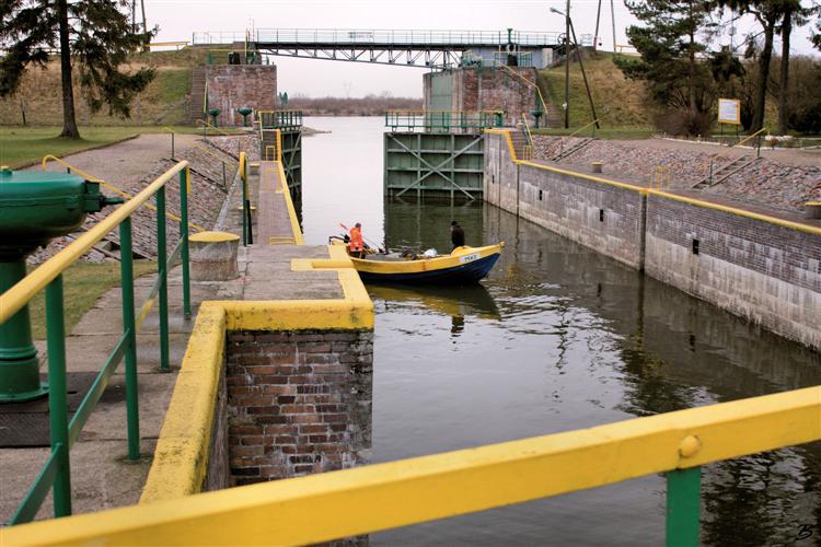 Śluza jest malowniczym i wciąż działającym zabytkiem hydrotechniki. Zbudowana została wraz z Przekopem Wisły w 1895 r. Nazwę odziedziczyła po dawnej twierdzy "Gdańska Głowa". Główną funkcją śluzy jest odcięcie nurtu Wisły od nurtu Szkarpawy w celu zapobieżenia powodziom na Żuławach.