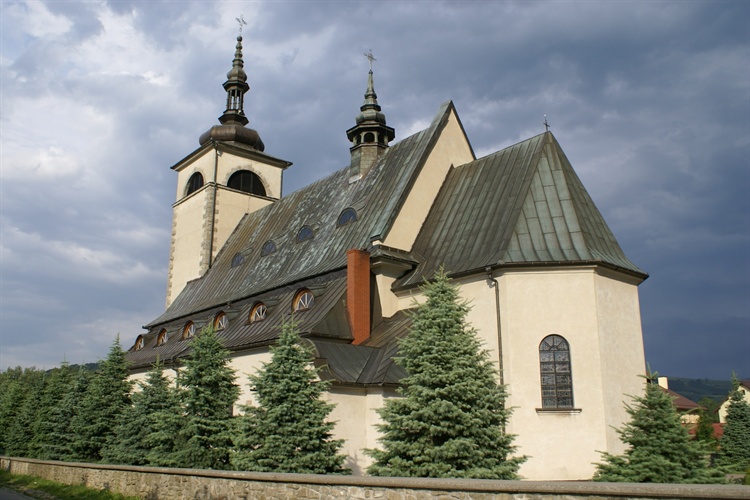 Kościół wzniesiony w latach 1932-1937 jest pierwszym kościołem murowanym. Poprzednie trzy świątynie uległy spaleniu (w 1646 i 1931 roku) lub zostały zniszczone przez powódź (w roku 1672). Trzynawowa świątynia zbudowana została w stylu eklektycznym z wieżą wysokości 45 m przykrytą hełmem, nawiązującą do stylu barokowego. Wyposażenie kościoła to przede wszystkim prosty ołtarz główny z rzeźbami przedstawiającymi scenę Przemienienia Pańskiego oraz trzy ołtarze boczne.