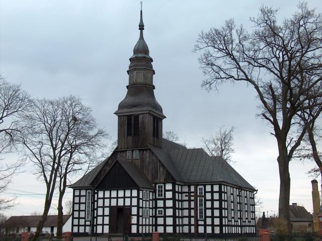 Kościół w Brzeziu został zbudowany w 1812 roku na miejscu kościoła, który spłonął w pożarze wsi. W wyposażeniu świątyni znalazły się uratowane z pożaru: rokokowy ołtarz, ambona z figurami apostołów oraz chrzcielnica. W 1923 roku zabytek został częściowo przebudowany. Dostawiono dwie nawy boczne i przybudówkę tworzącą kruchtę zachodnią. Gontowe pokrycie dachu zastąpiono dachówką.
