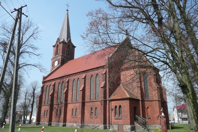 Neogotycki kościół pw. Zmartwychwstania Pańskiego zbudowany został jako ewangelicki w latach 1881-1883. Świątynia jest murowana z czerwonej cegły, nietynkowana, na kamiennej podmurówce.