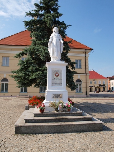 Wśród kolorowych kamieniczek łęczyckiego starego rynku, obok pięknego ratusza, stoi pomnik Matki Boskiej. Dokładnie w tym miejscu po zakończeniu I wojny światowej mieszkańcy Łęczycy rozbrajali żołnierzy niemieckich. Pomnik upamiętnia to wydarzenie i dzień 11 listopada 1918 roku.