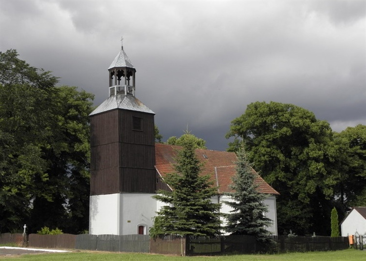 Kościół – jak większość świątyń na ziemiach zachodnich - jest poewangelicki, więc i wnętrze ma skromne. Konsekrowano go 26.01.1946. W 1949 r. jedna z parafianek podarowała świątyni przywieziony z Częstochowy obraz Najświętszej Panienki. Mieszkańcy umieścili go w specjalnie zbudowanym bocznym ołtarzu.