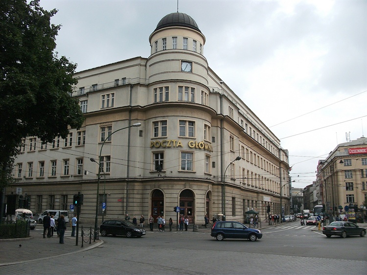 Budynek Poczty Głównej w Krakowie zbudowany został w latach 1887-1889 u zbiegu dzisiejszych ulic Wielopole i Westerplatte. Budynek zaprojektował wiedeńczyk Fryderyk Setz, a budowę prowadzili Karol Knaus i Tadeusz Stryjeński. Obiekt o ciekawej, neorenesansowej architekturze został przebudowany w latach 1930-1931 według projektu arch. Franciszka Mączyńskiego. W budynku zamontowano pierwszą na ziemiach polskich automatyczną centralę telefoniczną.