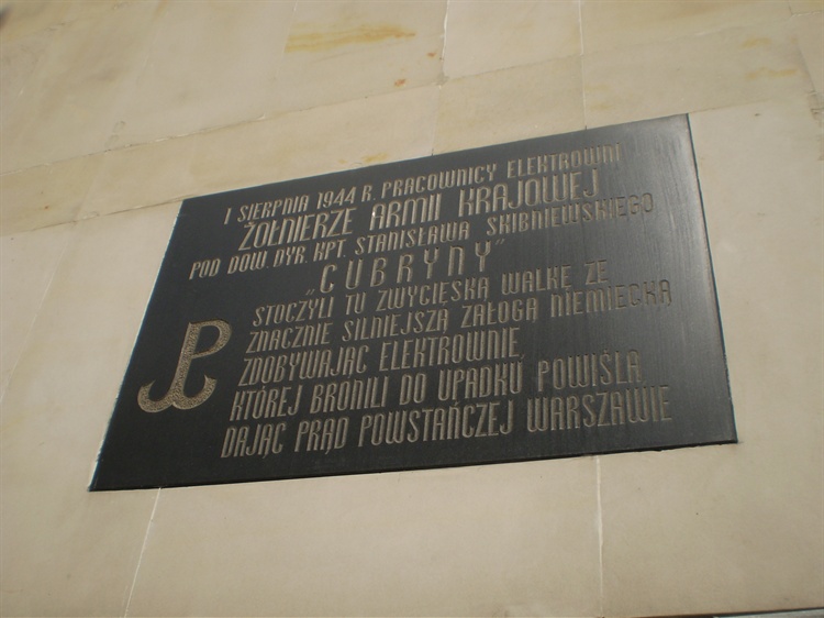 Tablica umieszczona jest na ścianie budynku Wybrzeże Kościuszkowskie 43, jednakże nie od strony Wybrzeża, ale od ulicy Tamka. Upamiętnia zwycięską bitwę o Elektrownię z dnia 1 sierpnia 1944 r., stoczoną między żołnierzami AK (pracownikami elektrowni) a znacznie silniejszą załogą niemiecką.