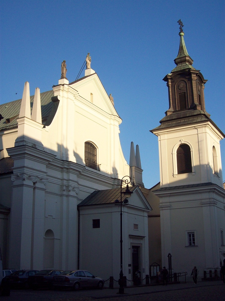 Historia kościoła św. Jacka wiąże się z Dominikanami, którzy w 1603 roku przybyli do Warszawy. Na ówczesnych przedmieściach miasta, pomiędzy ulicami Freta i Rybaki, zakupili oni parcelę pod budowę nowej świątyni i klasztoru. W pierwszej kolejności została wybudowana cegielnia, która produkowała materiał na budowę obiektów sakralnych. Następnie wzniesiono tymczasową drewnianą kaplicę i skromny klasztor, w którym zamieszkało jedenastu braci wraz z ojcem Abrahamem Bzowskim, który był inicjatorem budowy kościoła i klasztoru. W 1605 roku zostały sprowadzone relikwie św. Jacka. Budowa rozpoczęła się w 1605 roku według projektu Joannesa Italusa. Dzięki wsparciu finansowemu licznych mieszkańców i możnych już w 1606 roku w części kościoła została odprawiona pierwsza msza święta. Całkowita budowa została ukończona dopiero w 1639 roku. W latach 1639-1651 został wzniesiony kompleks klasztorny na planie litery T. Prezbiterium było wybudowane w stylu gotyckim, natomiast fasada i nawy w stylu barokowym. W pierwszej połowie XVII wieku powstały kaplice: Matki Bożej Śnieżnej i Św. Krzyża oraz stalle w prezbiterium. Kościół bardzo ucierpiał podczas potopu szwedzkiego, ale dzięki staraniom dominikanów w drugiej połowie XVII powrócił do swej dawnej świetności. W roku 1662 została wybudowana dzwonnica. W 1690 roku Adam Kotowski ufundował kaplicę grobową dla rodziny według projektu Tylmana z German. W XVIII wieku klasztor Ojców Dominikanów posiadał największą bibliotekę w Polsce. W 1805 roku na terenie klasztoru został urządzony szpital, a także koszary dla żołnierzy napoleońskich. W tym czasie wnętrze kościoła zostało zniszczone, a w 1815 roku wybudowany został nowy ołtarz. W 1823 roku do bryły kościoła została dobudowana przebudówka z podcieniami, w której umieszczono kramy targowe. Po upadku powstania listopadowego klasztor uległ kasacie. Budynki klasztorne zostały przekazane Warszawskiemu Towarzystwu Dobroczynności, natomiast świątynia stała się kościołem filialnym parafii nowomiejskiej. W 1944 roku w kościele został urządzony szpital powstańczy. Podczas bombardowań w świątyni zginęło ponad tysiąc osób. Z kościoła ocalała jedynie część murów i kaplica Kotowskich. Po zakończeniu działań wojennych na ulicę Freta 8/10 wrócili Ojcowie Dominikanie, którzy podnieśli świątynię z ruin w latach 1947-62. Nie zostały odtworzone bogate wnętrze oraz dziewiętnastowieczne podcienia. Cechą charakterystyczną kościoła jest to, że nie wchodzi się do niego schodami do góry, jak w większości kościołów, tylko w dół. We wnętrzu świątynia jest bardzo przestronna i jasna, utrzymana w białej tonacji. W ołtarzu głównym znajdują się: krucyfiks, rzeźby najświętszej Marii Panny i św. Jana oraz obrazy św. Jacka i św. Dominika. W prawej nawie mieści się kaplica Matki Boskiej Fatimskiej oraz nagrobek Katarzyny z Kosińskich Ossolińskiej, natomiast w lewej kaplica Kotowskich, zaś w podziemiu krypta grobowa Kotowskich, a także kaplica św. Dominika z nagrobkiem Ossolińskich. Na ścianach wiszą obrazy pochodzące z Żółkwi na Ukrainie, które przedstawiają dzieje klasztoru. Charakterystycznym elementem świątyni jest barokowa dzwonnica, która stoi po prawej stronie od głównego wejścia. Z zewnątrz fasadę zwieńczają trzy posągi: Matki Boskiej, św. Jacka i św. Dominika.