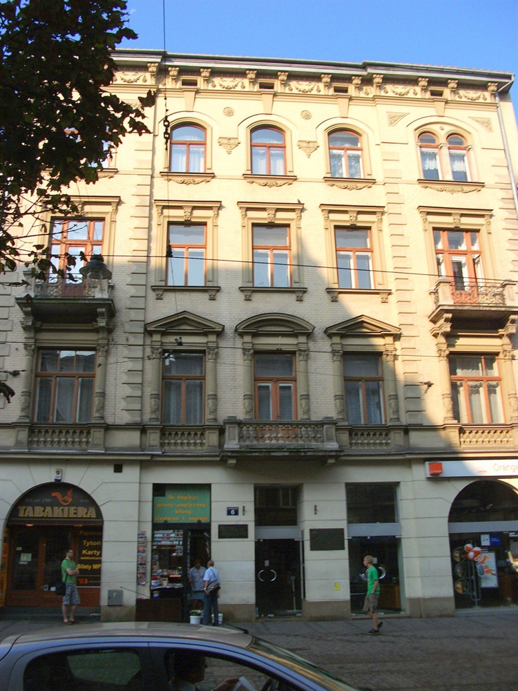 Secesyjna kamienica przy ulicy Karmelickiej jest jedną z wielu w mieście. Wyróżnia ją natomiast jej dawny mieszkaniec. W domu tym mieszkał Tadeusz Boy-Żeleński, pisarz i krytyk teatralny zamordowany przez hitlerowców we Lwowie. Pod adresem tym znajduje się obecnie Teatr Bagatela imienia pisarza. W ścianie kamienicy wmurowana jest tablica pamięci Marii Biliżanki-Bilińskiej - twórczyni Teatru dla Dzieci i dyrektora Teatru Młodego Widza i Rozmaitości.